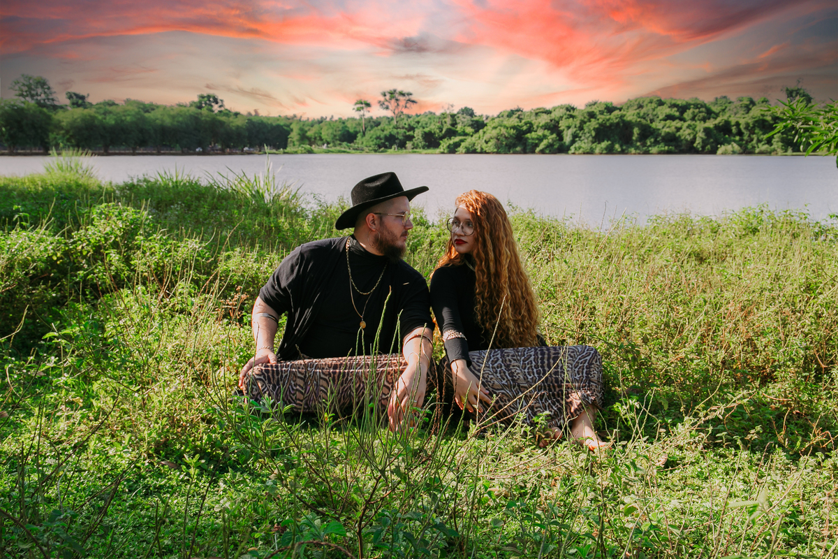 Ensaio fotográfico do duo Vozmecê, marcando o momento de transição da dupla de Campo Grande (MS) para São Paulo. Produzido no Lago do Amor, na Cidade Universitária da UFMS, o ensaio incorpora elementos da paisagem e da memória local, afirmando a identidade sul-mato-grossense do projeto.